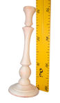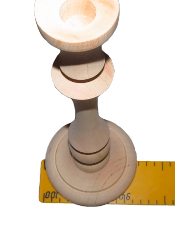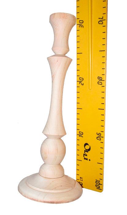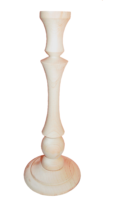 Для изготовления обычно используют дерево берёзы, ясеня, бука и другие породы дерева. Длина подсвечника 30 см, диаметр в самом широком месте 11 см, диаметр места под свечу 1,8 см.