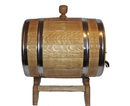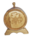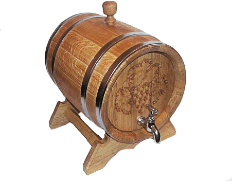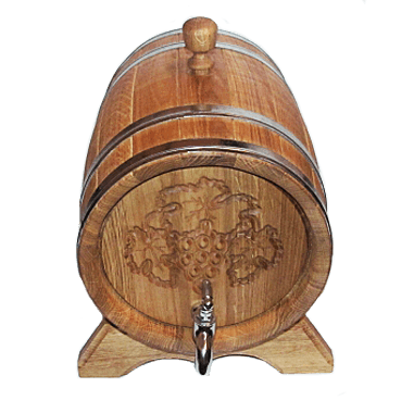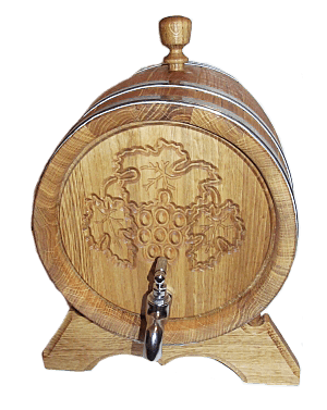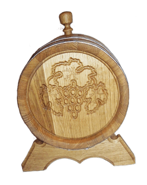 Дубовая бочка, для домашнего хранения и приготовления вина, или коньяка. Объём бочки до 10 л. Бочка украшена резной виноградной лозой. Дубовая бочка с художественным оформлением ― отличный подарок для здоровья, красоты, а также для дизайна помещения.