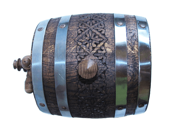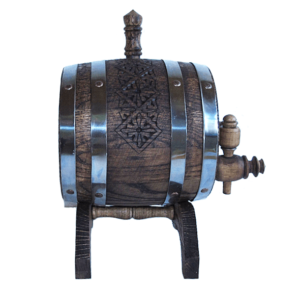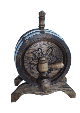 Дубовая бочка, для домашнего хранения и приготовления вина, или коньяка. Объём бочки до 2л. Бочка украшена резной виноградной лозой. Дубовая бочка способна лаконично вписаться в любой интерьер и стать прекрасным украшением праздничного стола. Наши бочки выполнены по всем законам бондарного мастерства. Достаточно один раз взять в руки настоящую дубовую бочку, что бы почувствовать энергетику этого многовекового изделия. Дубовой бочёнок наполненный вином, коньяком, пивом ил другими напитками символизирует гостеприимность и щедрость хозяина.