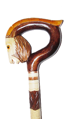 Опорная трость ручной работы. Украшена резной головой козла. Орнамент по всей длине украшает и придает оригинальность. Россыпи камней на рукояти, ценные породы древесины, изысканная резьба ствола, эксклюзивная работа мастера – все это отличает трость ручной работы.