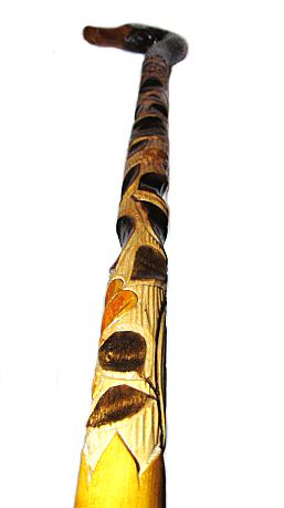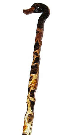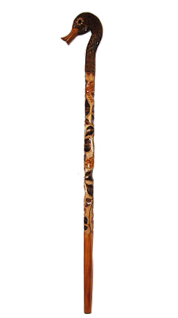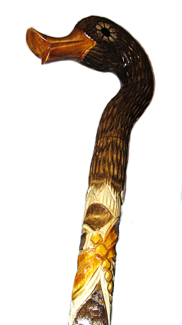 Деревянная трость ручной работы с рукояткой в виде утки. Трость украшена сложными и необычайно красивыми резными орнаментами. Изысканная вещь, отличающая своего обладателя от массы окружающих его людей. Филигранно проработано до мельчайших деталей.