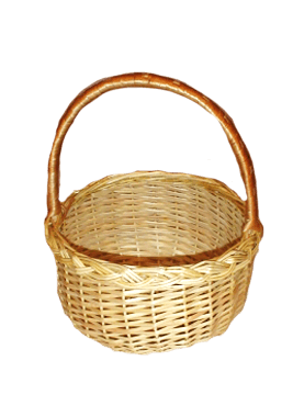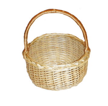 Корзинка круглой формы, изготовлена из лозы. Плетеная корзина может использоваться и для похода в лес, на пикник, на рынок, для хранения фруктов и хлеба. Даже в качестве подарка она будет идеальным вариантом, поскольку выглядит нарядной и праздничной.