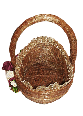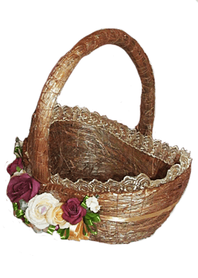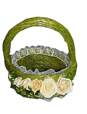 Корзинка изготовлена из натурального сена. Размером 27х20х30 см. Плетеные корзины известны человечеству давно. С каждым годом сфера их применения расширяется в разы, и если раньше их использовали только в качестве удобного способа хранения и переноски вещей, то уже сегодня плетеные корзины служат прекрасной основой для создания настоящих подарочных и цветочных шедевров.