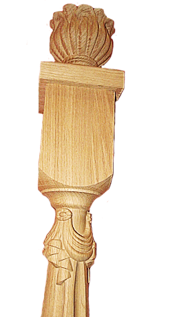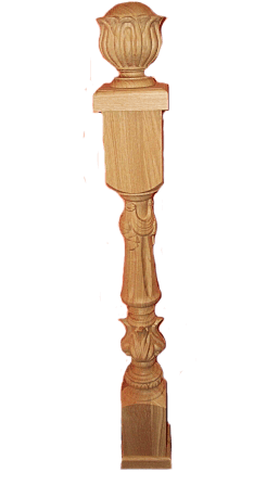 Деревянный столб, применяется при сборе ступенек. Выполнен на ЧПУ оборудовании, имеет оригинальные объемные резные рисунки. Резные столбы для лестниц – практичное и эстетичное оформление дома.