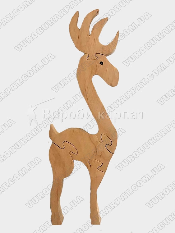 Деревянная игрушка-пазл, без лакокрасочного покрытия в форме оленя. Полностью экологически чистая продукция. Отличный подарок вашему ребенку для его развития.