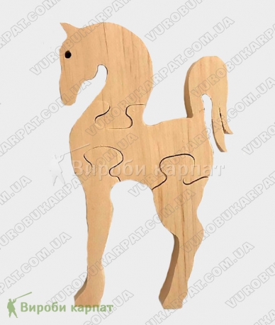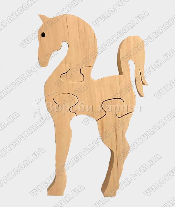 Деревянная игрушка-пазл в форме коня, изготовленная из экологического карпатского натурального дерева. Без лакокрасочного покрытия. Отличный подарок вашему ребенку для его развития.