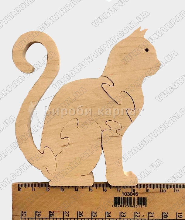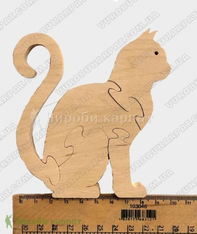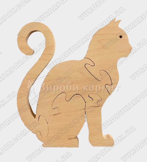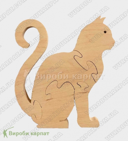 Деревянная игрушка-пазл в форме котика, изготовленная из экологического карпатского натурального дерева. Без лакокрасочного покрытия. Отличный подарок вашему ребенку для его развития.