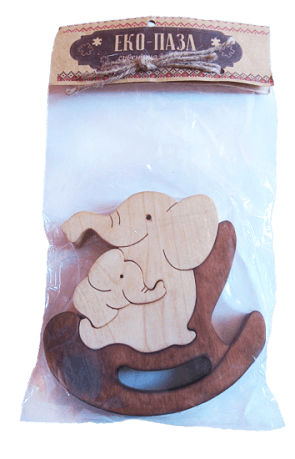 Очаровательны слоники могут стать милым подарком вашему малышу. Пазл тщательно зашлифован и безопасен, без лако-красочного покрытия.