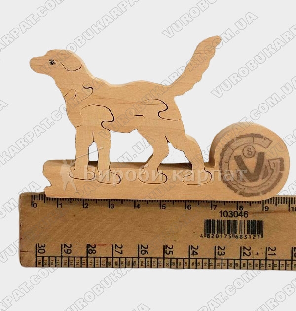 Деревянная игрушка-пазл в форме собачки, изготовленная из экологического карпатского натурального дерева. Без лакокрасочного покрытия. Отличный подарок вашему ребенку для его развития.