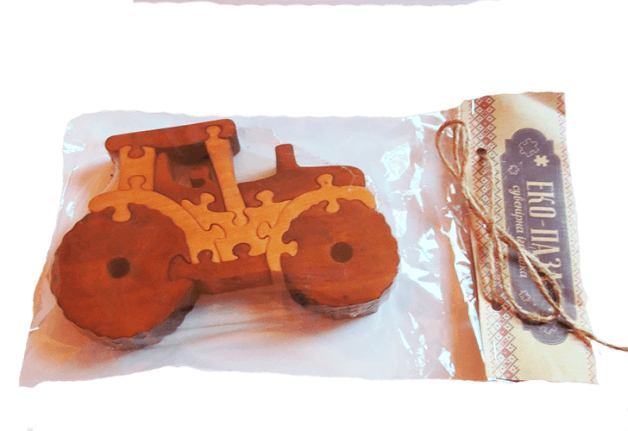 Трактор деревянный эко пазл. Трактор состоит из нескольких крупных фрагментов, которые нужно собрать. Такой деревянный пазл отлично развивает у ребенка мелкую моторику, координацию движений, логическое мышление, а также соотношение понятий "часть" и "целое". Пазл из натурального дерева, без лако-красочного покрытия.