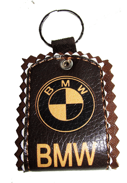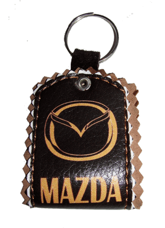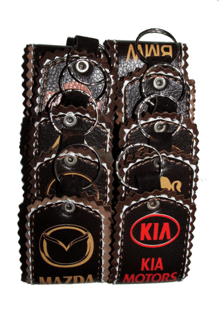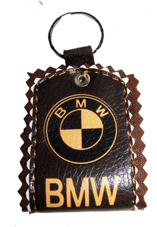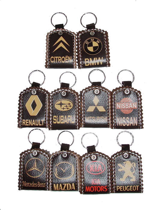 Брелки с логотипами популярных брендов автомобилей, сделанных из натуральной кожи.