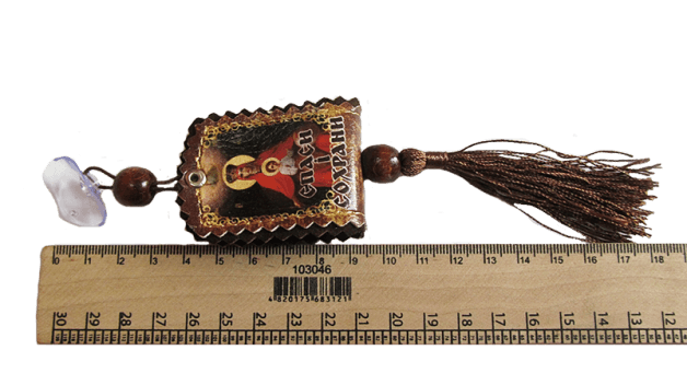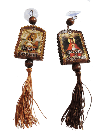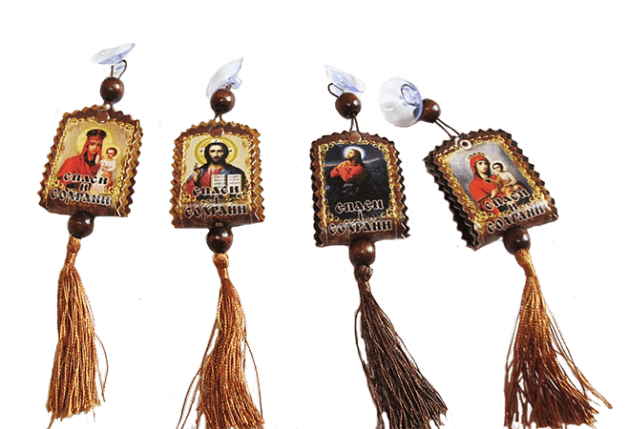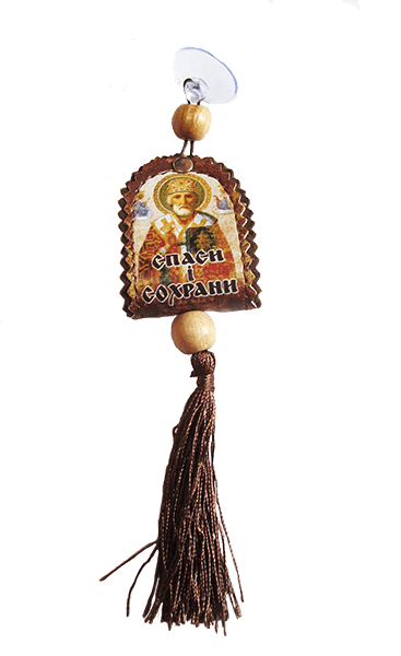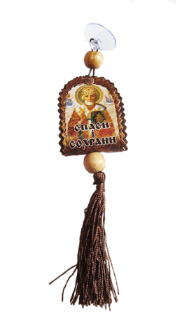 Кожаная автомобильная подвеска с иконкой на присоске. Существует также мнение, что иконы в салоне не должны видеть посторонние люди. Поэтому поместить ее можно в бардачок. Главное, чтобы водитель верил, в защиту от религиозного лика. Отличный подарок каждому автолюбителю - автомобильная иконка-подвеска.