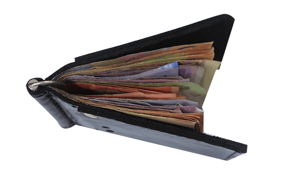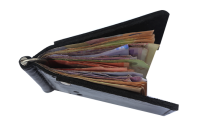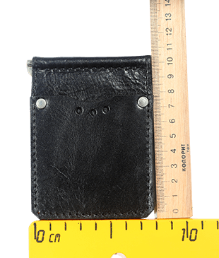 Кошелёк изготовлен из натуральной кожи. Много полезных отделений. Удобно хранить бумажные купюры, металлический зажим не даёт им распадаться, есть отделение для мелочи, визитки, кредитки. Компактный размер.