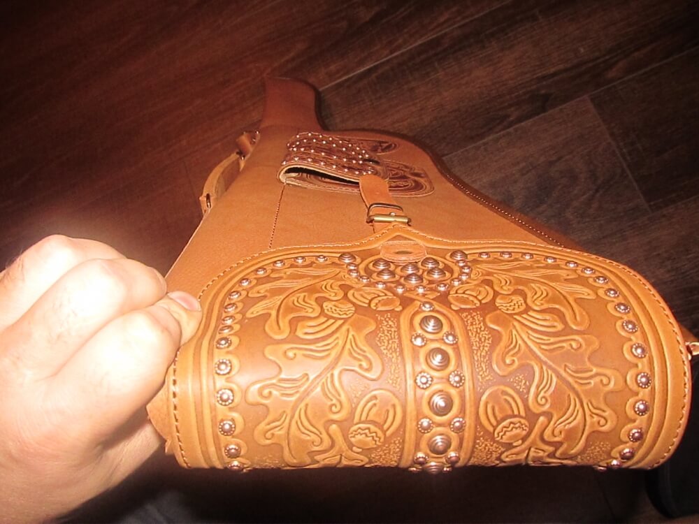 Чехол для охотничьего ружья из натуральной кожи. Богато украшенный тиснением, это действительно царский подарок для любого охотника.