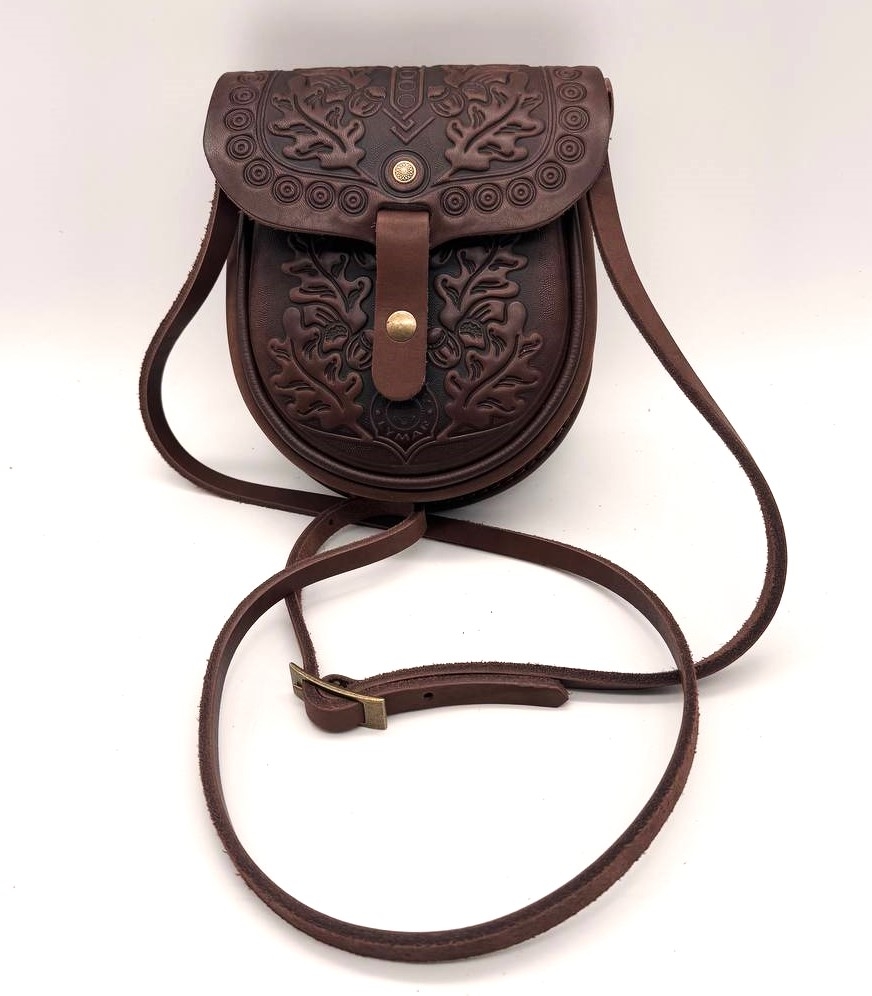Сумка «Желудь Малютка» из натуральной кожи.Компактная сумка ручной работы выполнена из высококачественной натуральной кожи. Ее дизайн вдохновлен природой, с изящным тиснением в виде дубовых листьев и желудей, что придает изделию уникальный шарм.