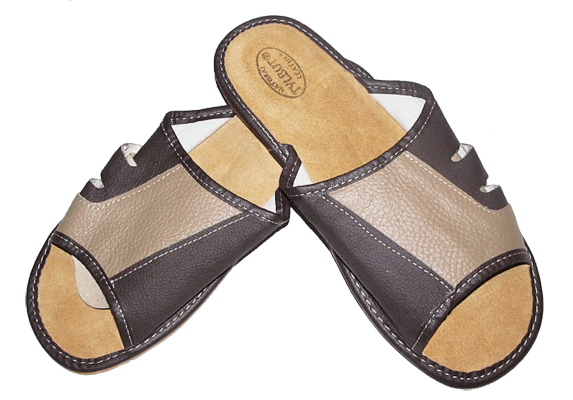 Кожаные мужские тапочки на микропористой подошве. Удобный летний вариант с открытым носком, для лучшей вентиляции ноги. Кожаные тапочки предпочитают покупать мужчины, которые любят использовать в обиходе качественные вещи, не приходящие в негодность через неделю носки. Тапочки из натуральной кожи смотрятся гораздо солиднее, чем тапочки из дешевых искусственных материалов, подчеркивая безупречный вкус и высокий статус их владельца.