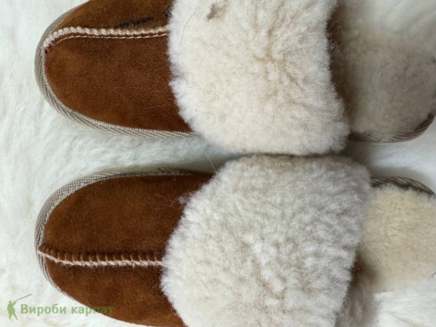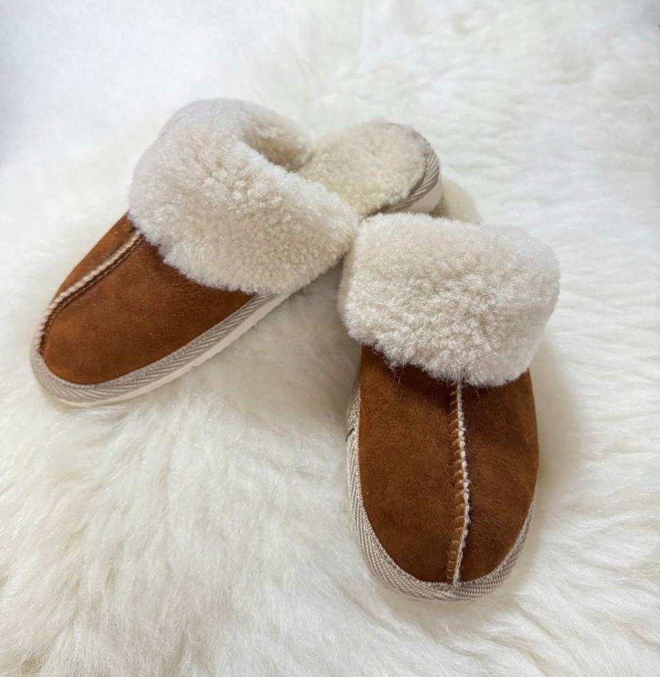 Женские замшевые тапочки на овчине