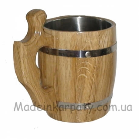 Украинская деревянная пивная кружка изготовлена из натурального дерева - дуб. Весь процесс изготовления составляющих частей и деталей кружки до её сборки проходит с большими затратами ручной работы. Деревянная пивная кружка это оригинальный подарок качество исполнения, которого безупречно. Такая сувенирная пивная кружка может стать началом большой коллекции. Внутри нержавеющая колба емкостью 0,5 л.