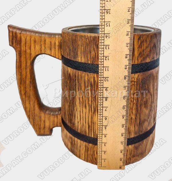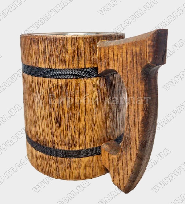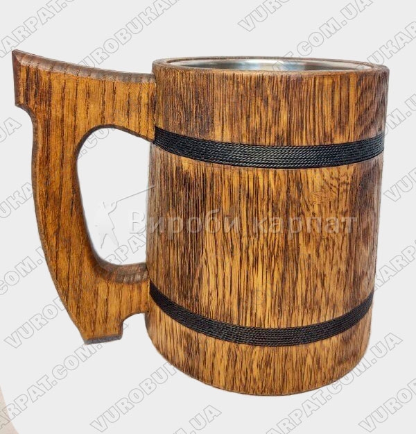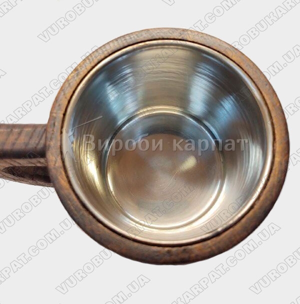 Бокал с металлической колбой. Выглядит такой бокал очень красиво и не обычно, а так же ненавязчиво оформлена тканевыми веревочками черного цвета. Кружка изготавливается из экологически чистого дерева. С таким бокалом вы будете оригинален и не поворимым, а также такой бокал отлично подойдет в подарок мужчине.