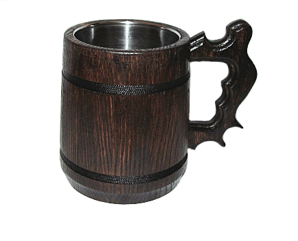 Деревянный пивной бокал из экологически чистого дуба. Внутри вмонтирована нержавеющая колба ёмкостью 0,5 л. Таким пивным бокалом можно пользоваться многие годы. Нержавеющая колба надежно предохраняет дерево от влаги и существенно увеличивает срок службы.