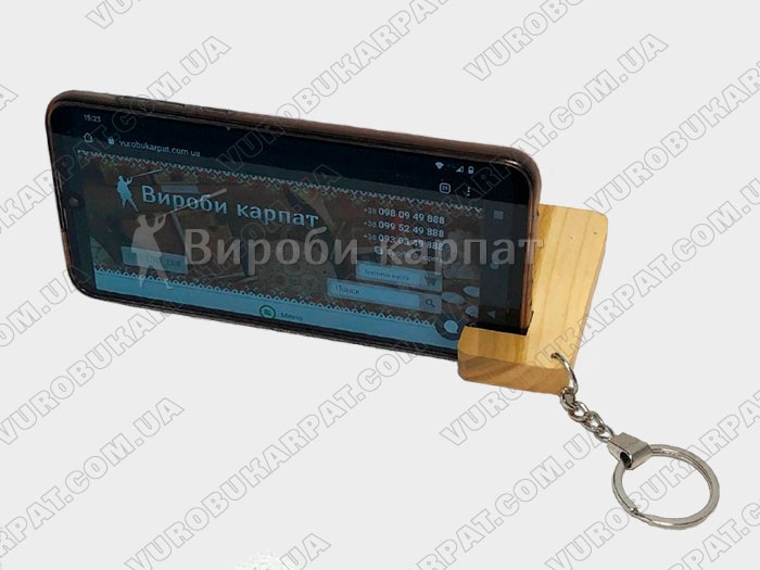 Оригинальный брелок подставка для телефона, универсальная и полезная вещь. Изготовлена из натурального дерева.