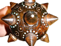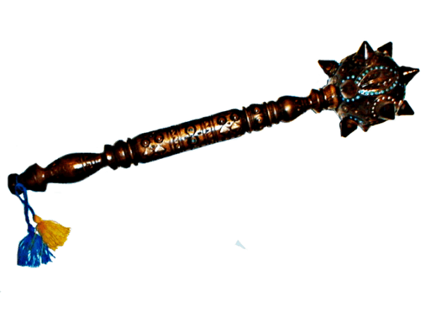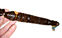 Деревянная булава с элементами ручной резьбы по дереву и инкрустацией.