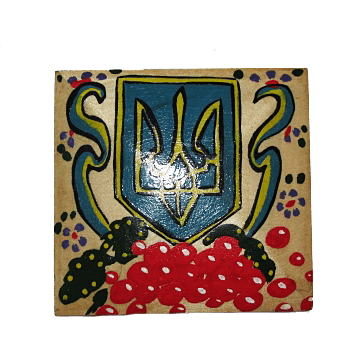 Патриотическая шкатулка с гербом Украины, размером 8х8 см. Изготовлена из натурального дерева, ручная художественная роспись.