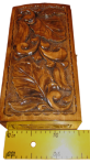 Деревянная шкатулка ручной работы, выполнена в одном из сложных техник резьбы по дереву - пластической. Внутренняя часть отделана бархатом. Размер шкатулки 28х15х8 см.
