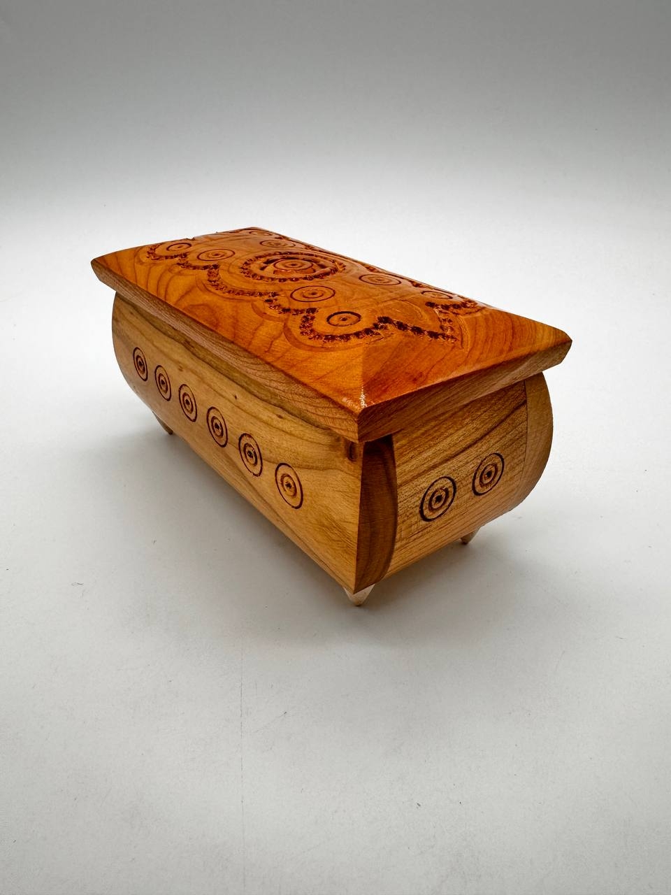 Деревянная резная шкатулка ручной работы произведение мастерства, поражающее своей утонченной красотой и уникальным дизайном. Каждая деталь шкатулки пронизана искусными движениями резьбы, что создает глубокие узоры и изысканный орнамент. Этот предмет может быть не только отличным подарком, но и отличным элементом декора, который придает особый слой элегантности любому интерьеру.