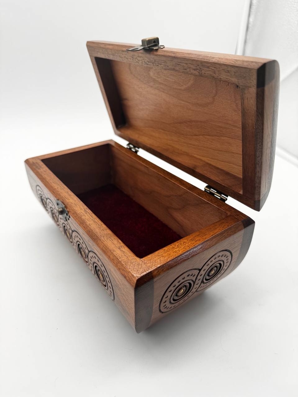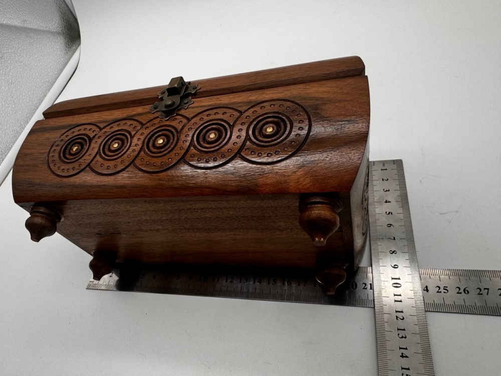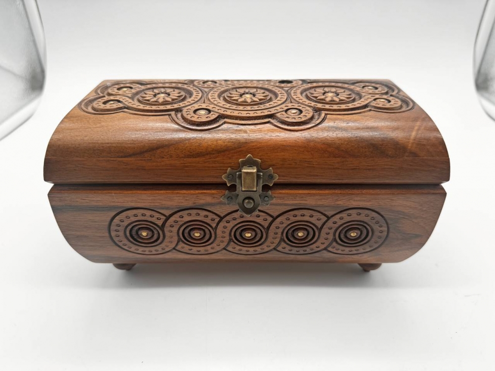 Деревянная резная шкатулка ручной работы. Изящная резьба придает шкатулке уникальный и элегантный вид. Она идеально подходит для хранения украшений, мельчайших предметов или сувениров. Изделие сочетает в себе мастерство ручной работы, природную красоту дерева и высокое качество, что делает его не только функциональным, но и декоративным элементом интерьера. Экологически чистый продукт, изготовленный из натурального дерева