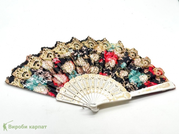 Элегантный декоративный веер с белой ручкой, изящным кружевным узором и пёстрым цветочным оформлением. Отлично подойдёт как стильный аксессуар или подарок. Веер легко складывается, удобен в использовании и хранении. В ассортименте разные расцветки (красный, синий, чёрный).