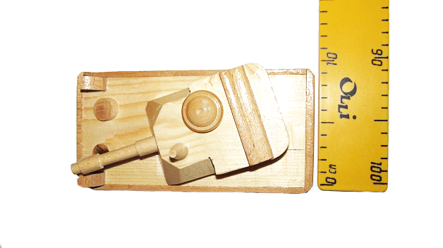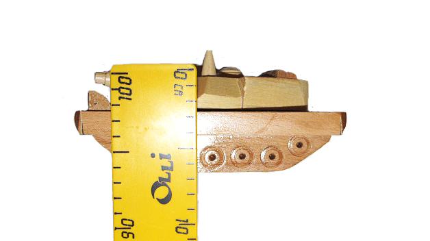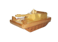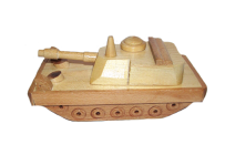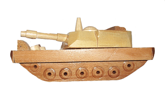 Деревянный танк, с поворотной башней. С внешней стороны, изделие покрыто лаком.