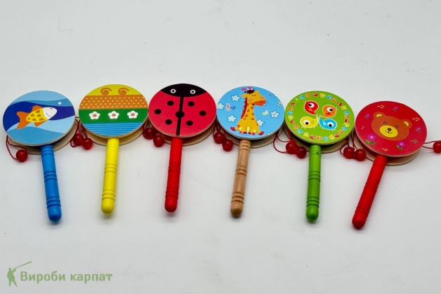 Детский деревянный барабан с ручкой