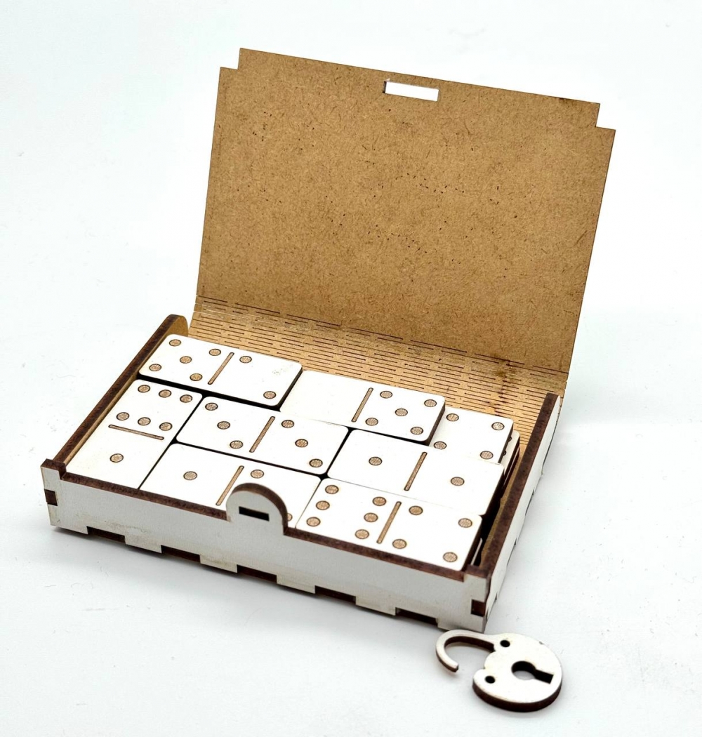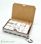 Оригинальный набор домино в деревянной шкатулке с выгравированным названием и декоративным замочком. Удобный формат хранения и эстетичный внешний вид делают его идеальным подарком и стильным элементом интерьера. Детали домино выполнены вручную с високою точностью.