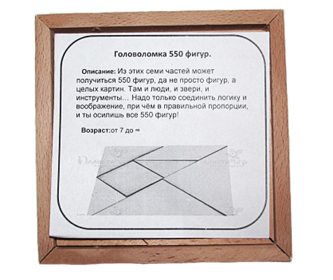 Фигура, которую необходимо получить, при этом обычно задаётся в виде силуэта или внешнего контура. При решении головоломки требуется соблюдать два условия: первое — необходимо использовать все семь фигур танграма, и второе — фигуры не должны перекрываться между собой. Танграм способствует развитию наглядно-образного мышления, воображения, внимания, понимания цвета, величины и формы, восприятия, комбинаторных способностей. Подходит как для детей так и для взрослых. Сложность заданий разная, от простых к очень сложным.