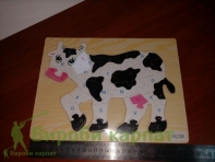Пазлы в форме коровки. Сделаны из фанеры.