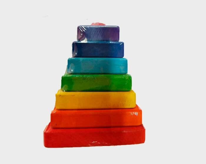 Деревянная пирамида с квадратными фигурками. Для развития координации у детей.