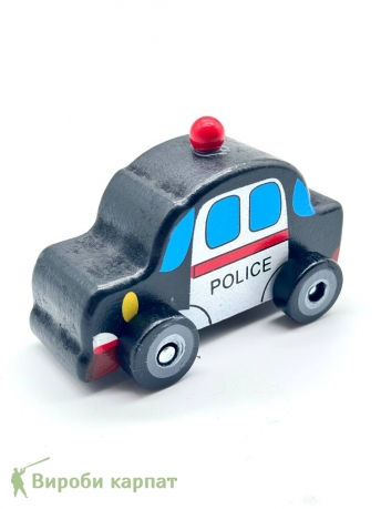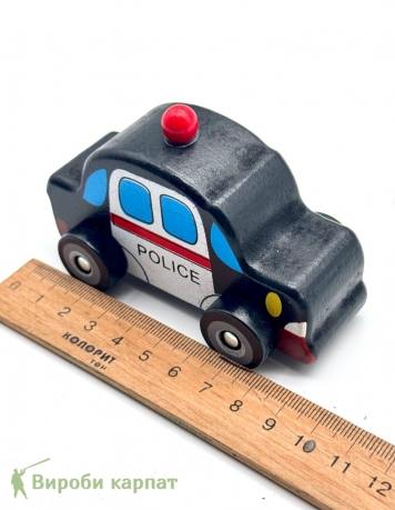 • Яркая деревянная машинка в классическом полицейском стиле с мигалкой.