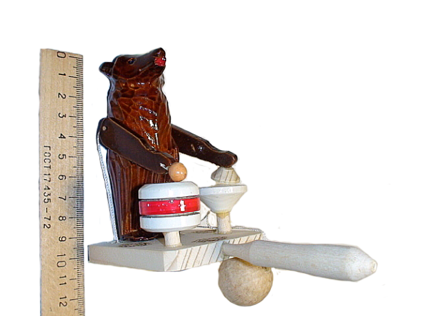 Вращательными движениями, можно заставит мишку играть на барабане.