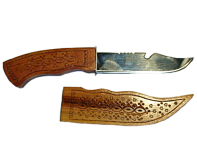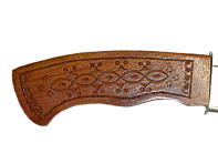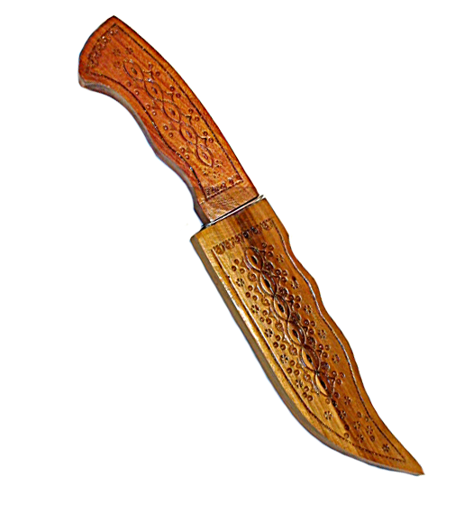 Гуцульский нож с деревянной ручкой и ножнам. Украшен художественной резьбой с этническим орнаментом .