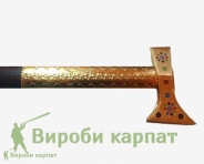 В наше время уже практически не осталось мастеров по изготовлению праздничных топоров, сделаных в старых и добрых традициях с элементами чеканки, гравировкой металла украшеного этническими рисунками. С такими топорами месные жители Карпат (мужская часть населения), имеет традицию на праздники ходить с праздничным топором. Он не предназначен для работы по назначению, так как топорище как правило сделано из меди, или латуни. Это символизирует отдачу чести, тому или иному празднику, дополнение к традиционным костюмам гуцулов, вышиванки, кептари и другие элементы. Наш интернет магазин плотно связан с местными традициями и мастерами нашего края. Мы нашли по своей сути уникальную работу мастера, который чтёт традиции свох предков, и делает для вас подобные топоры ручной работы. По истене уникальная и очень редкая работа, которая к сожалению постепенно исчезает. Не пропустите свой шанс владеть таким топром, если вы истенный ценитель подобных украшений и традиций гоцульского народа.
