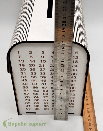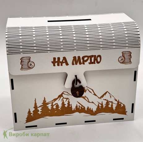 Оригинальная деревянная копилка с гравировкой. Имеет 365 пронумерованных ячеек — по одной на каждый день года. Верхнее отверстие для купюр и монет. Лицевая сторона оформлена надписью "На мечту" и горами. Отличный подарок и мотивация на сбережения.