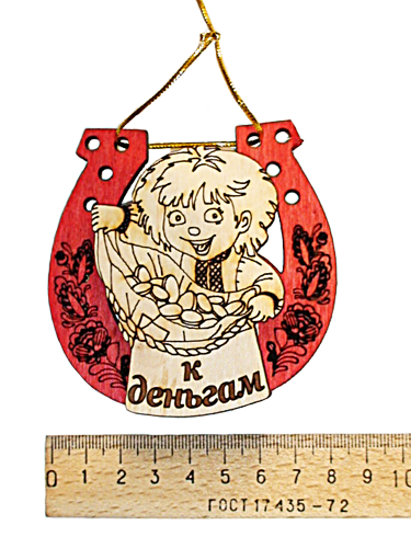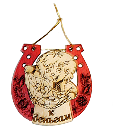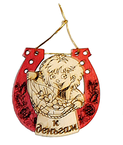 Магнит-сувенир для холодильника. Это шаловливый малыш, не даром залез в подкову! Сочетание изображения подковы и мешка с деньгами. обязательно привлечет к Вам финансовую удачу.
