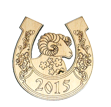 Магнит из фанеры с выжиганием символа 2015 года.