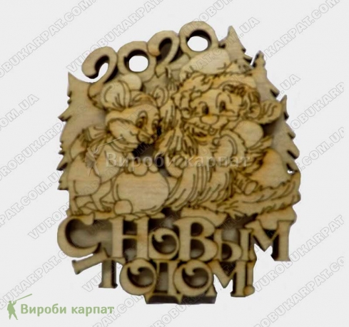 Деревянный мышонок с дедом морозом, к новому 2020 году.