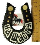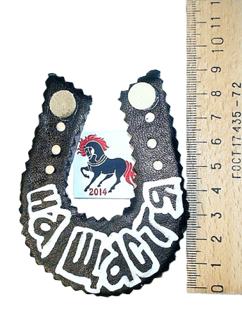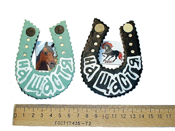 Деревянная подкова, в кожаной оплётке. На тыльной поверхности есть магнит.