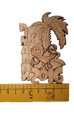 Сувенир, изготовлен к году обезьяны. На задней поверхности есть магнит, который с лёгкостью будет держатся на металлической поверхности.