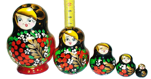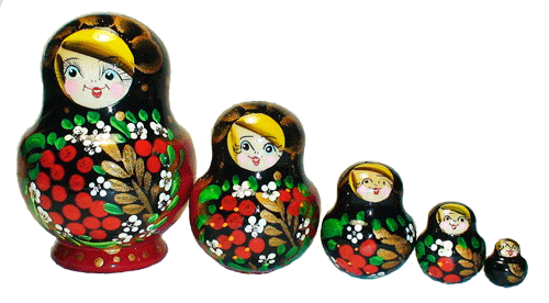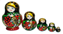 Украинская матрёшка "Пузатая", маленького размера. Расписана в стиле петриковской росписи. Пять фигур.