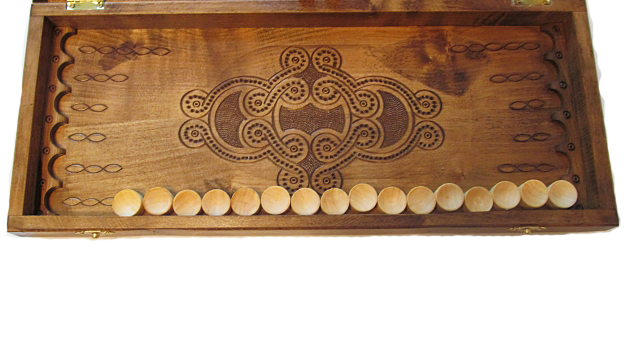 Деревянные нарды с элементами резьбы по дереву. Ручная работа. Размер нард в разложенном виде 40х40 см.
