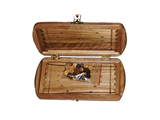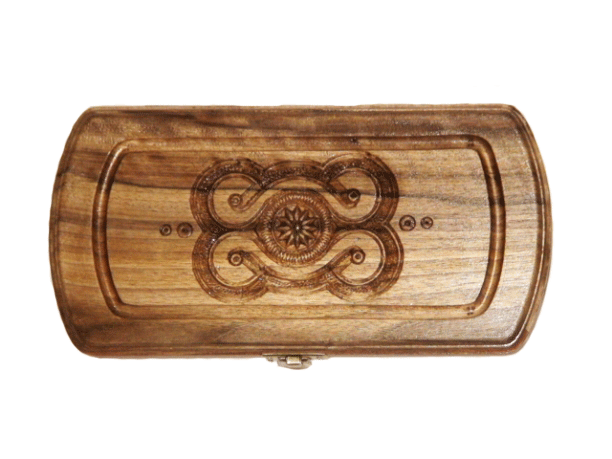 Дорожные нарды. Размер в сложенном виде 23х11см. Изготовлены из ореха. Украшены элементами ручной резьбы по дереву. Не большой размер игральной доски — лучшее приобретение для путешественника-интеллектуала, большой семьи или дружной компании. Они не займут много места. Древняя игра легко скрасит вечер дома, в кафе и даже в дороге.